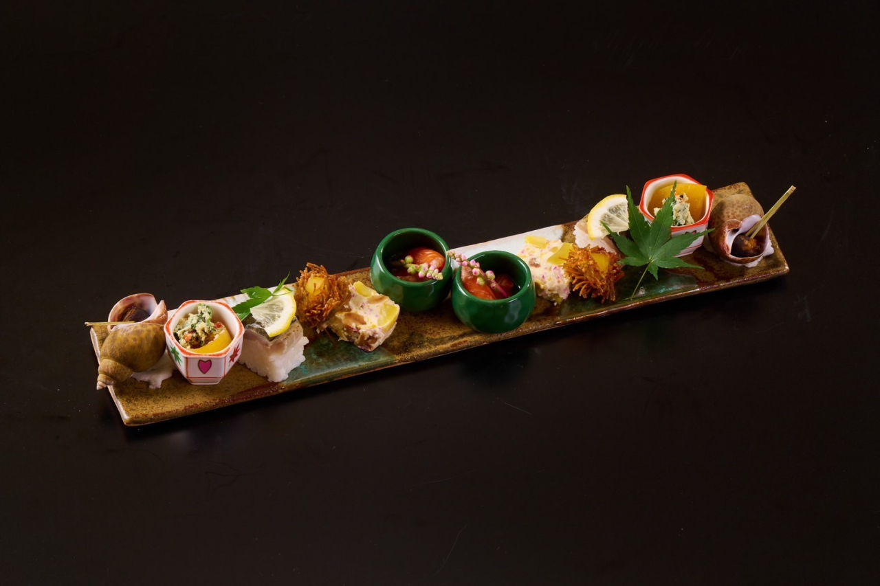 山で育った山菜や畜産物、平野で作られた野菜や果実、富山湾の多種の魚介。豊富な季節の食材をひとつひとつ吟味し、ジャンルにとらわれない独創的なエッセンスを加えたコース料理に仕立て上げます。
